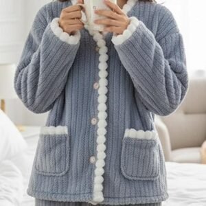 Experience ultimate comfort and warmth with this elegant women’s fleece nightwear set. Designed for the colder months, this two-piece ensemble combines style and coziness, making it your go-to choice for lounging or sleeping.